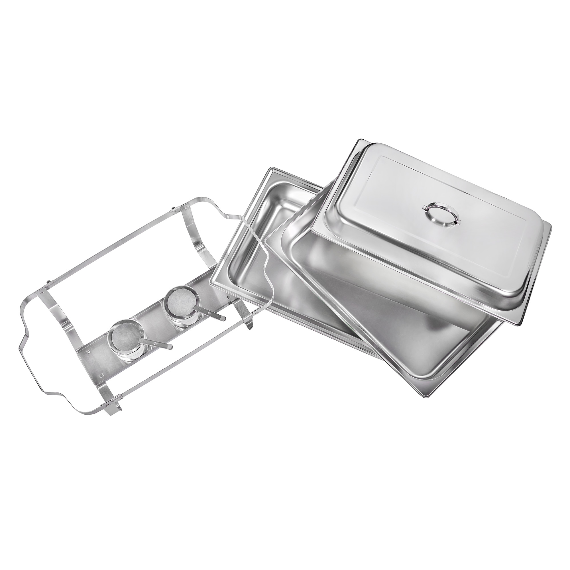 Dank stabiler Griffe lässt sich der Warmhaltebehälter sicher transportieren – ob zum Buffet oder für den mobilen Einsatz beim Catering. Im Lieferumfang enthalten sind außerdem zwei passende Brennpastenbehälter für gleichmäßige Wärme. (Brennpaste nicht im Lieferumfang enthalten.)EINFACHE REINIGUNG