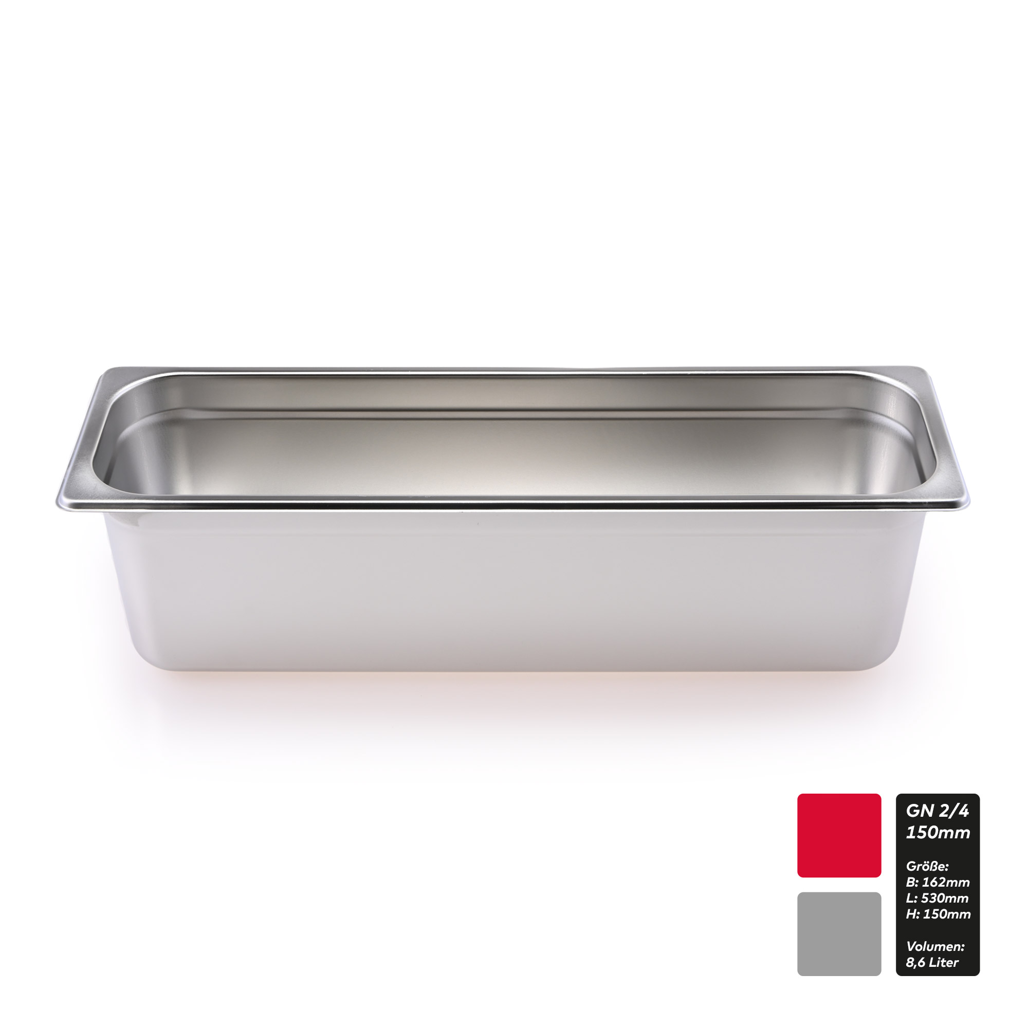 Unsere hochwertigen Gastronomie Behälter von TEKNOSTAHL® bestechen durch ihr hervorragendes Preis-/Leistungsverhältnis. Hier in der Grösse 2/4 in den Tiefen 20mm-100mm.